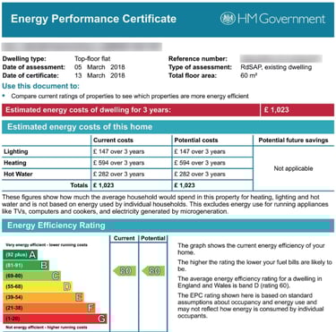 An Energy Performance Certificate (EPC) gives your property a simple rating from A to G, showing how energy efficient it is.